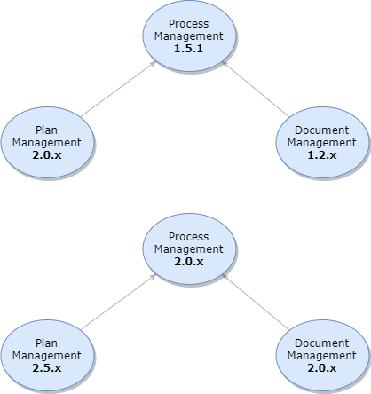 The solution to this, is to upgrade the Process Managment so that it can work with the most latest version of the Document Management module used by the Plan Management or upgrade both modules to the latest version of the Document Management