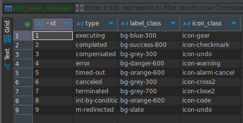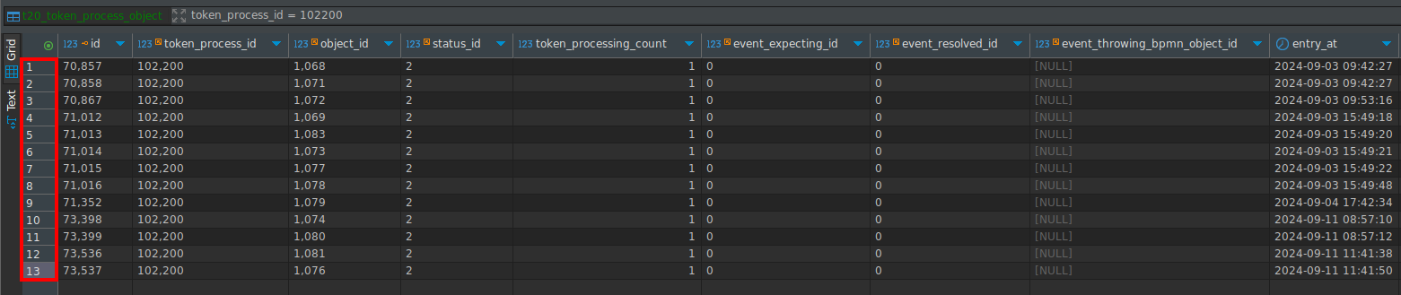 First, you can check the history of the process case in the Processes Engine » Task History, pay attention to the blue numbers for each step, you can use them to compare with the DBeaver table listing of all the t20_token_process_objects. By using this, you can know precisely from which step you need to put in execution.
