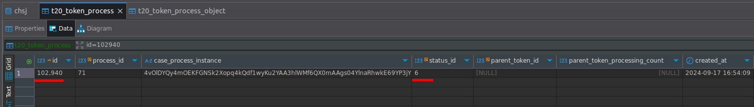 Copy the ID value and go to t20_token_process_object, filter for token_process_id and check the associated tasks.